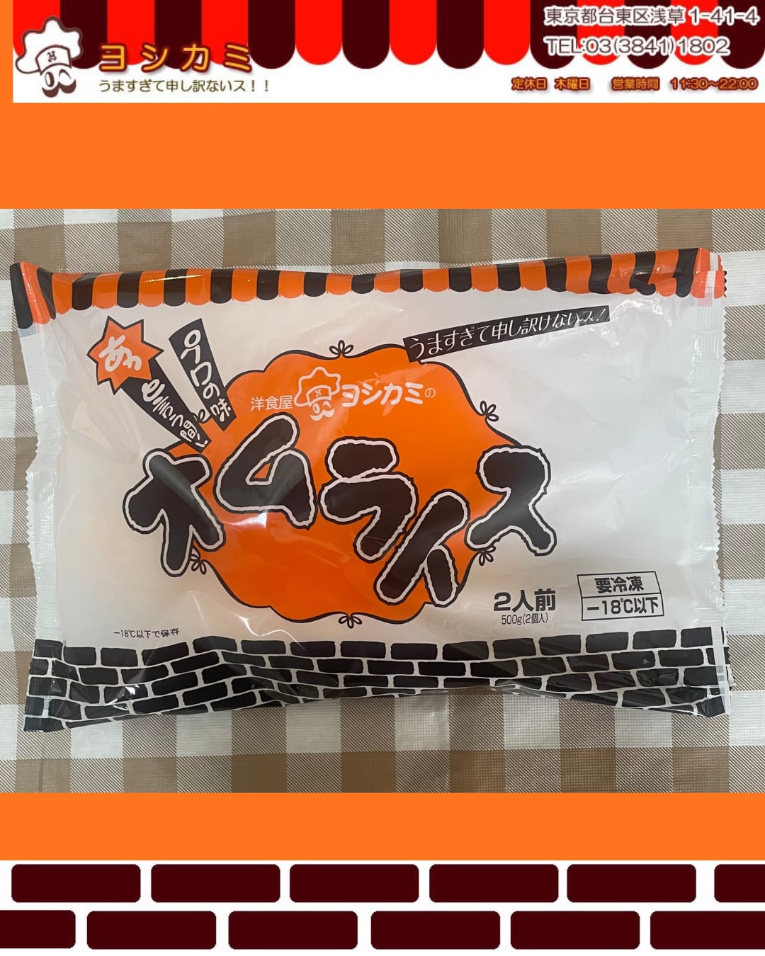 お店で人気のヨシカミのオムライスを、ご家庭でも食べて頂けるように商品開発。ふんわり厚めの卵で、昔ながらのオーソドックスなチキンライスを包み込みました